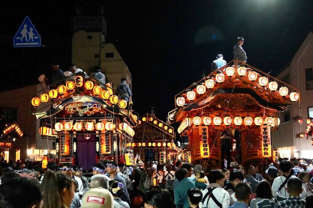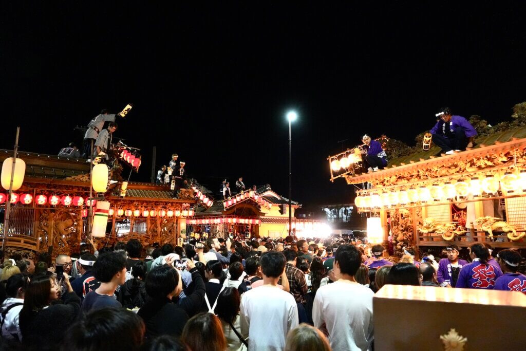 「ぶっつけ」では、何台もの屋台が集まってお囃子を一斉に奏で競い合います。かなり賑やかですよ。