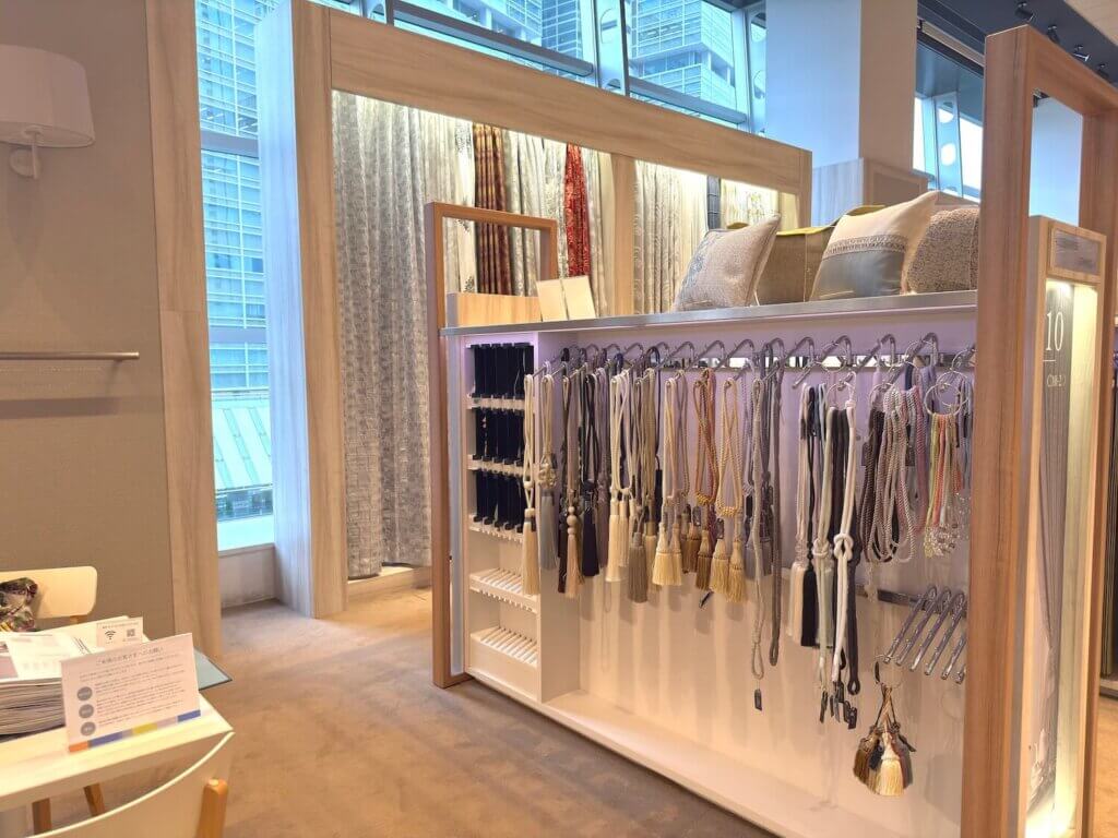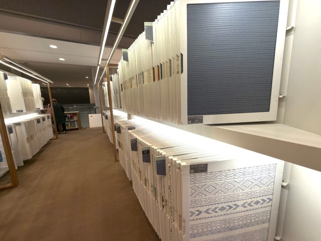 カーテンもたくさん展示してありました。カーテンはクロスと違って価格差があるので、このような場所で価格と柄と機能を比べてみれると良いですね。