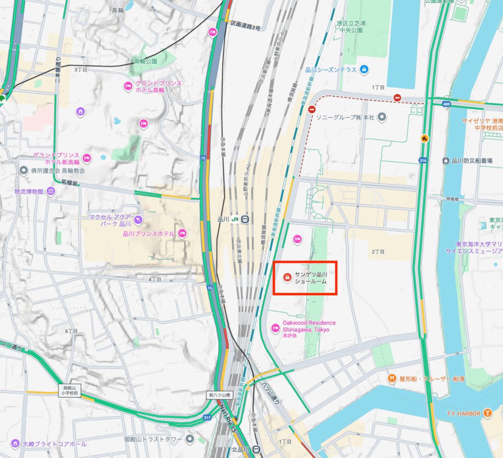 サンゲツのショールームは、品川駅から歩いて5分ほど。この辺りは高層ビルがあって、通路をトコトコと歩いて行くので距離を感じます。