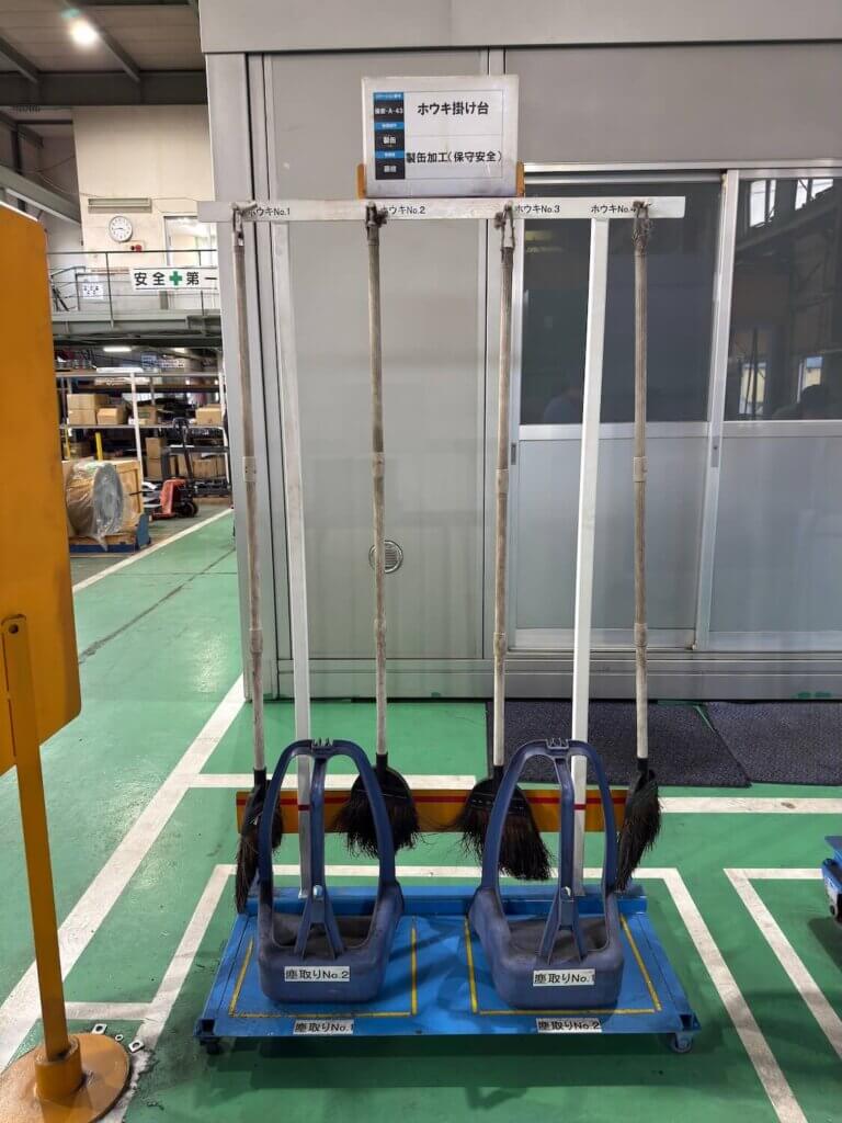 掃除道具も、しっかりと並べてあります。当然のように思われるかもしれませんが、出来ていない工場も多いのでは無いでしょうか。