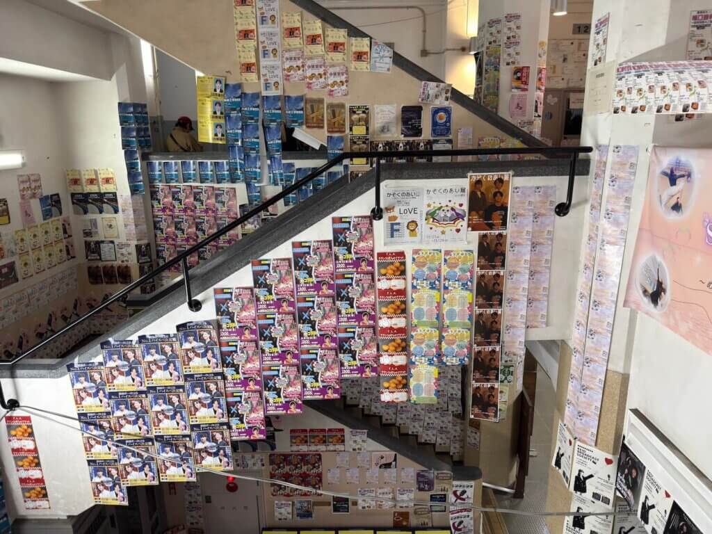大きなポスターは作らずに、小さなチラシを貼っているだけ。大きさの制限があるのかな。A3で作ってもと思いますね。