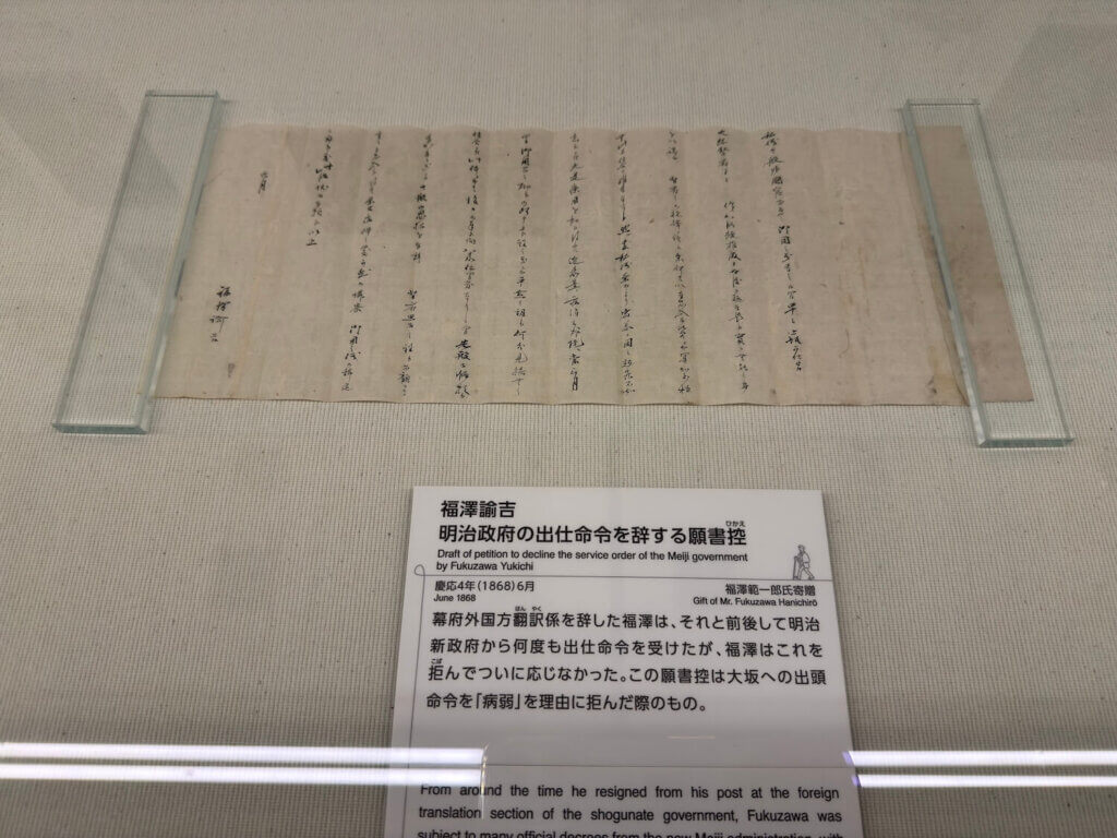 「福沢諭吉」先生の手紙も展示してありました。