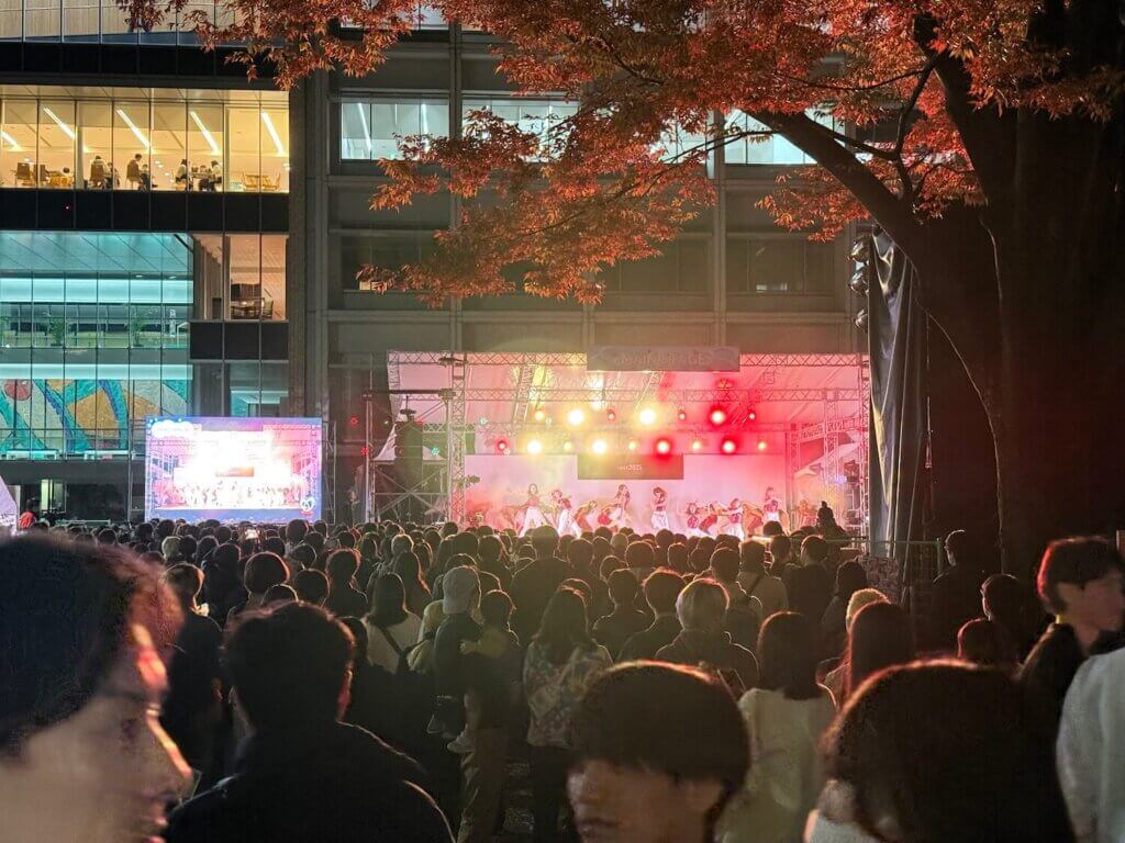日が落ちても熱気は冷めません。ライブ会場にはたくさんの人が詰め寄っています。午前中からずっとこの感じです。