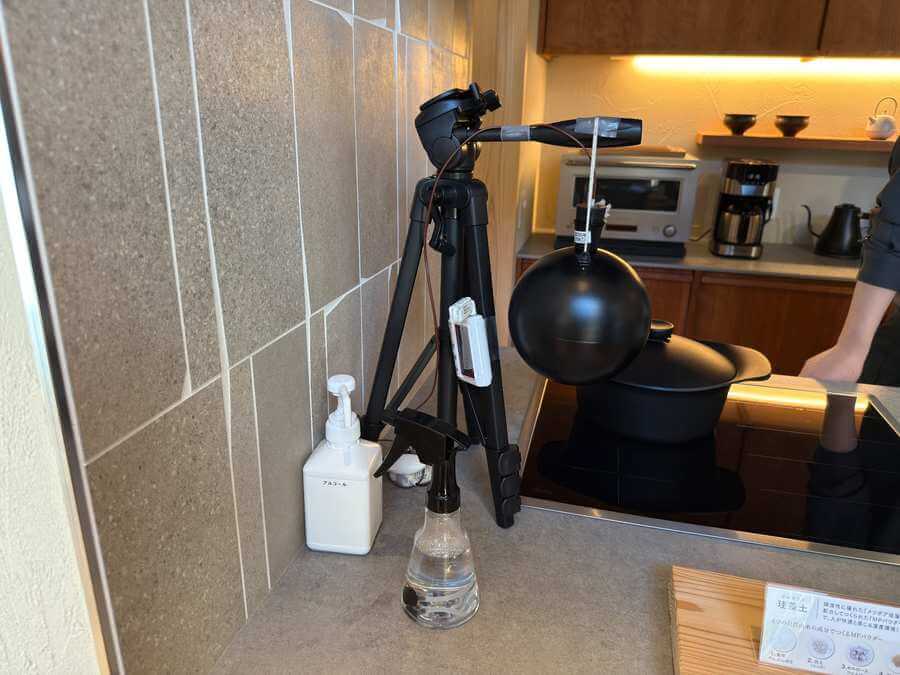 奥の三脚には、測定器が付けられていました。