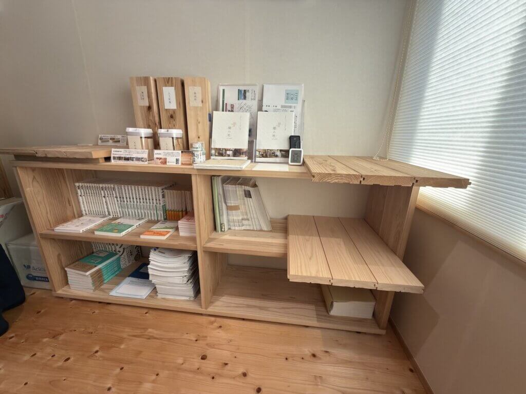 サンプルにも自然素材がたくさん展示してあります。それに松尾先生の本もたくさんありました。
