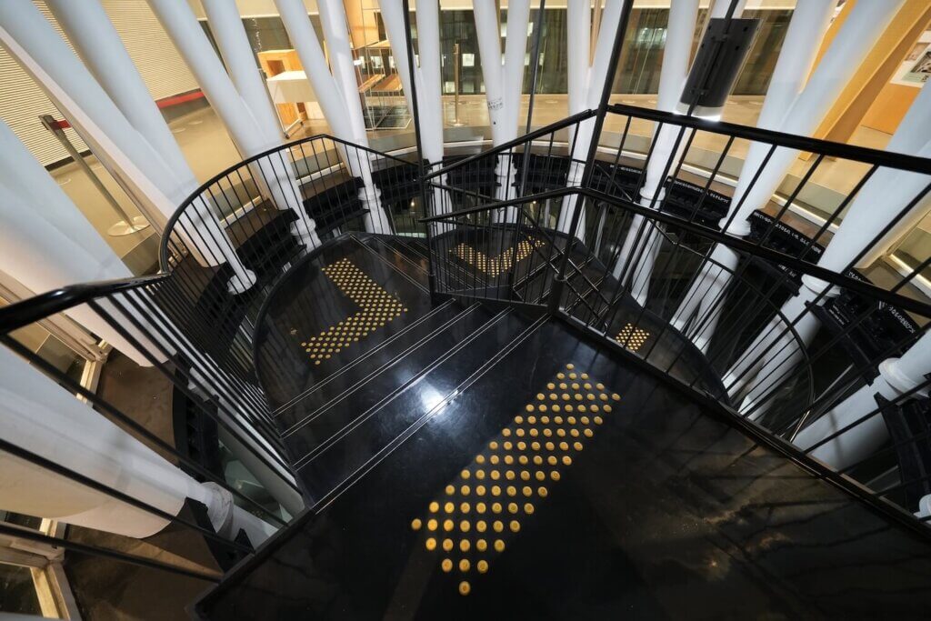 こちらは非常階段。途中に哲学的な言葉が書かれていたり、歩いているだけで楽しませてくれます。