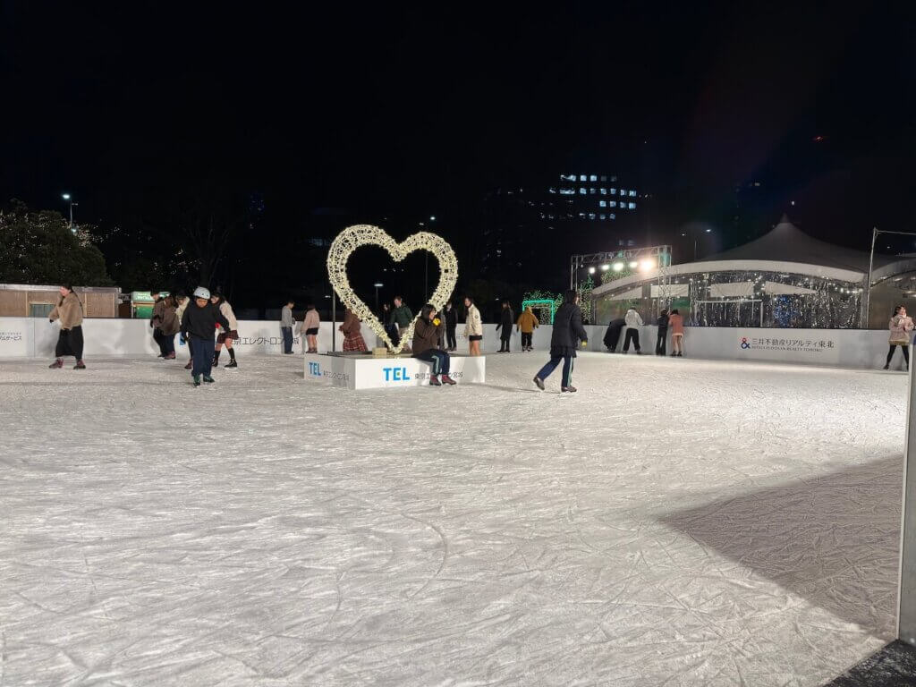 近くの公園にはスケート場もありました。最近使われるようになった板を使ったスケートリンクかと思ったら、本物の氷が敷いてありました。仙台も昼間は暖かくなると思いますが、大丈夫なんですね。