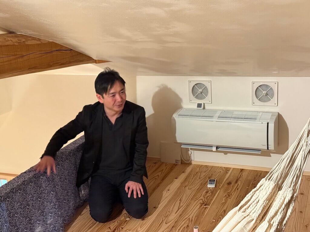 冷房は、ロフトにつけたエアコンとから行われます。こちらも、ロフトに冷気を流して、お家を冷やしています。