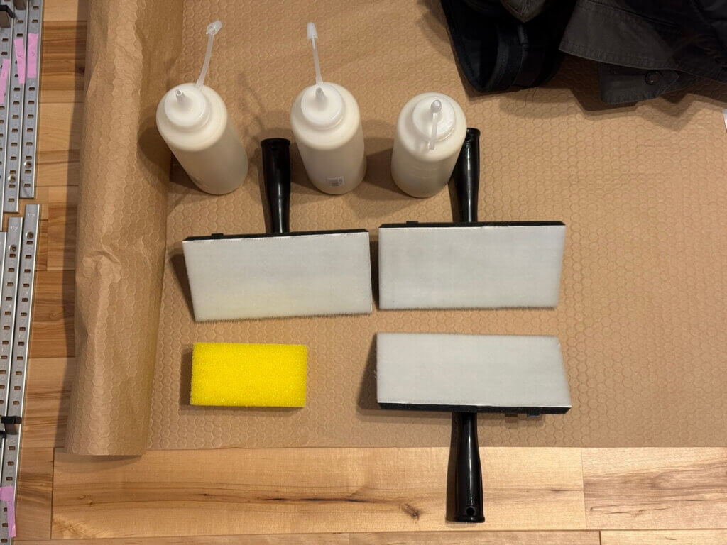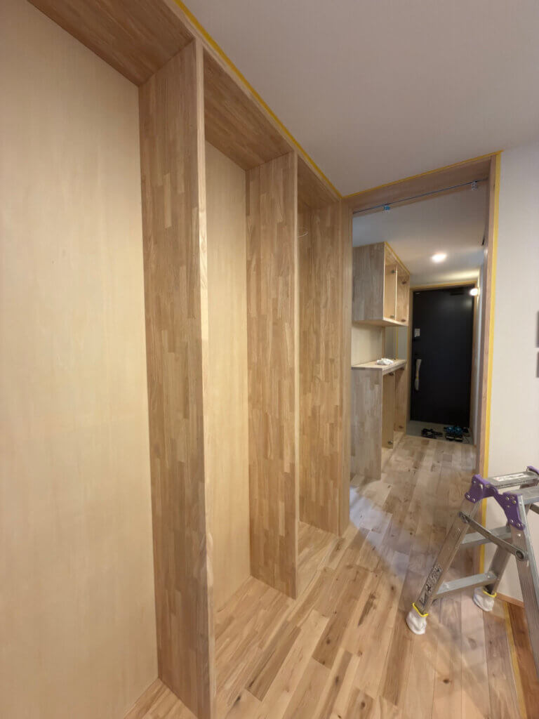 建具のシナベニアは染み込むので大変かも。それに、建具を動かす時に気をつけないと壁や天井などに傷をつけてしまいそうでした。