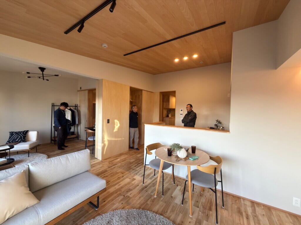 写真に写っている3人のうち、真ん中の人が夢・建築工房の代表でもある岸野さん。色々と楽しいお話を伺うことが出来ました。