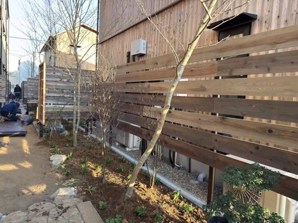 1階には、お庭に植栽までしてあります。ガーデニングで野菜を育てるスペースまで完備。す、凄すぎます。