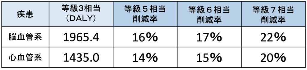等級5と6を見比べると、14%〜17%野中と削減率はほぼ同じです。要するに、長生きするということ。