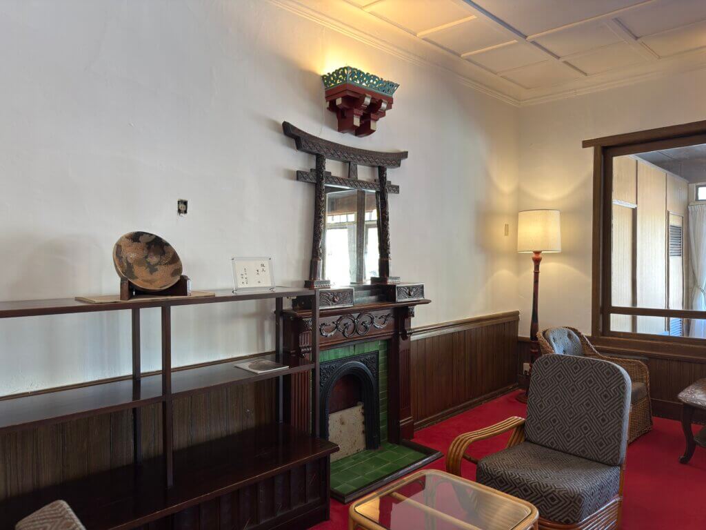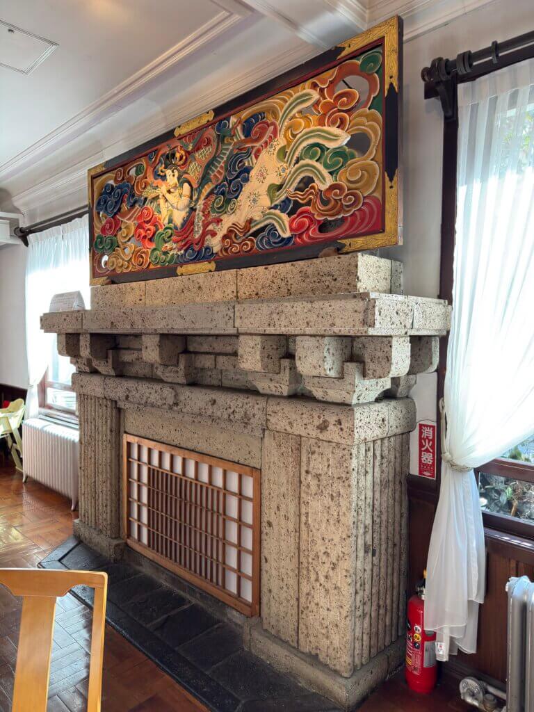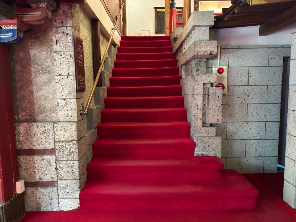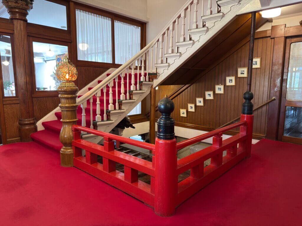いつも行って気になるのが、この階段手摺です。神社と洋館を合わせたような、不思議な空間です。