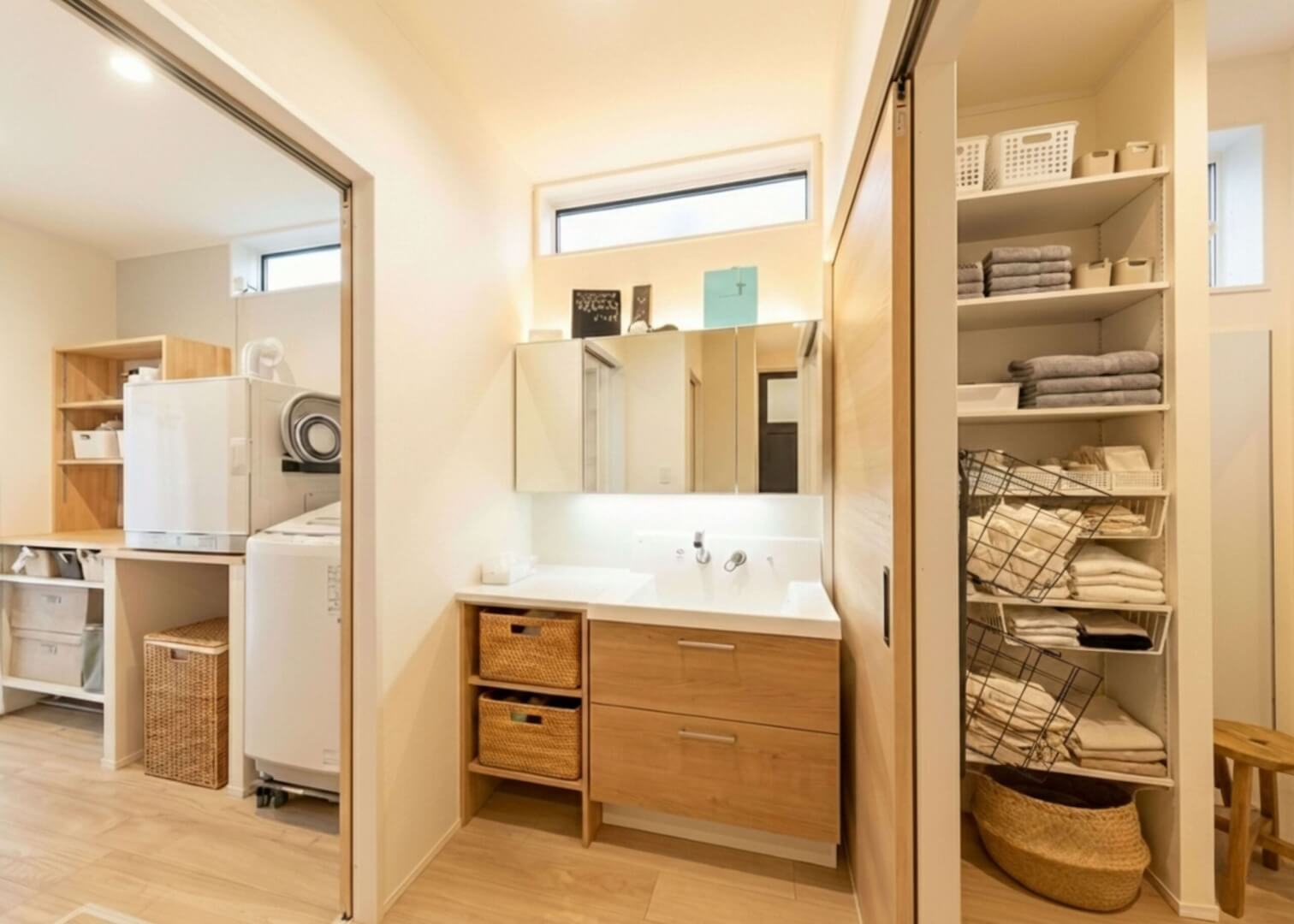 洗濯して、干して、乾いたらその場で畳んでしまう。この動線は、共働きご夫婦の時間を少しだけラクにすること間違いなしです。