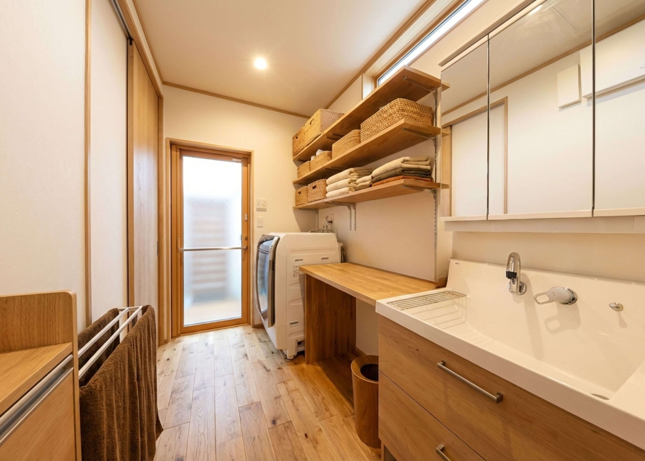 ランドリールームの近くに広いクローゼット設けて日常の「しまう・探す」を短縮。