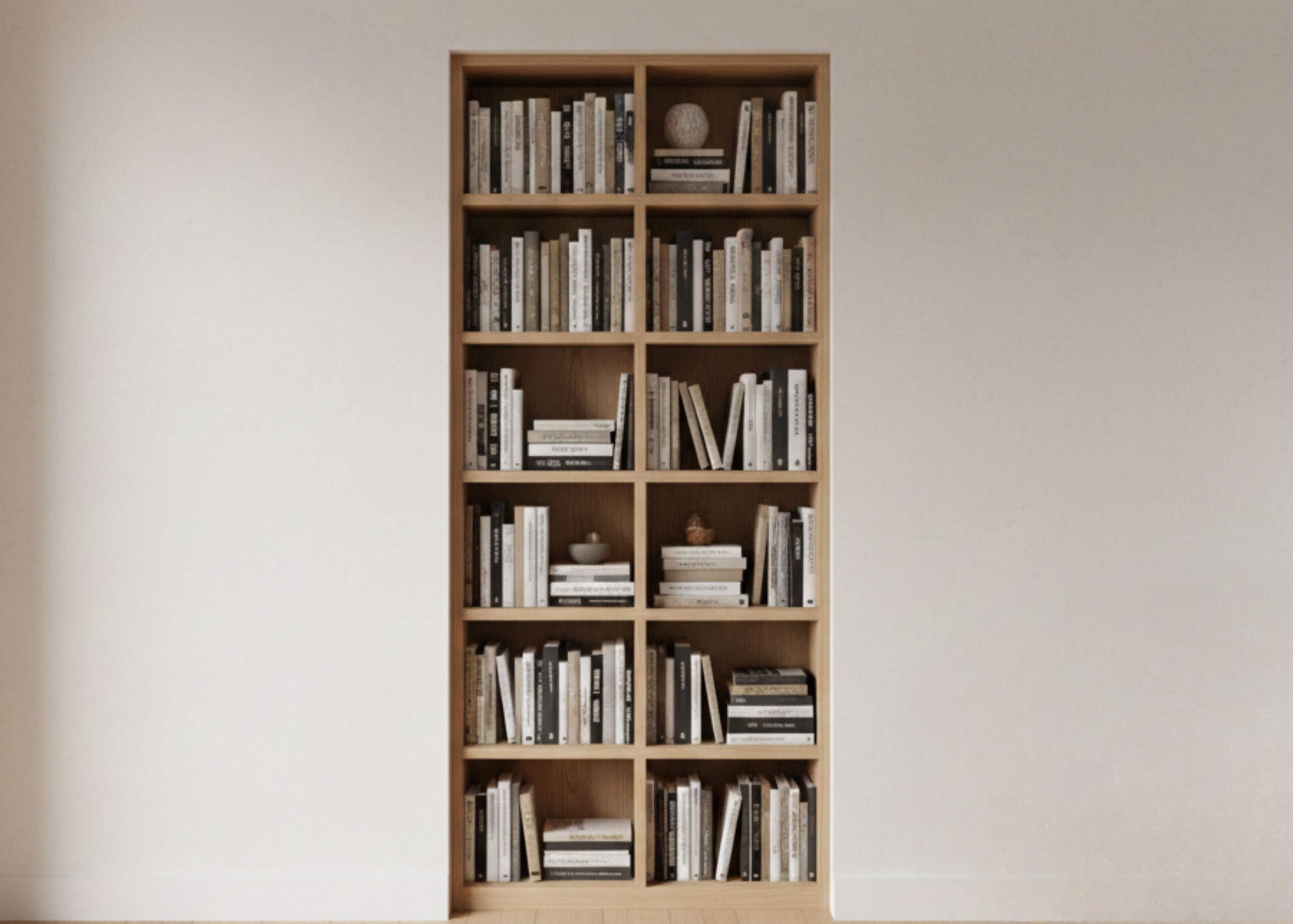 壁に溶け込むように設けた本棚は、実はご主人の書斎へと続く扉になっています。