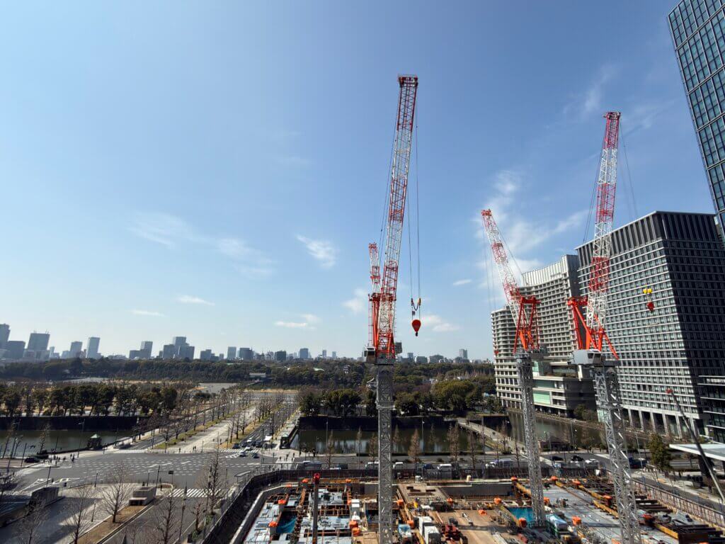 例えばここ。東京駅から皇居側へ行った丸ビルの隣。皇居を見ようかと思ったら工事を行なっています。それも、かなり大きそう。