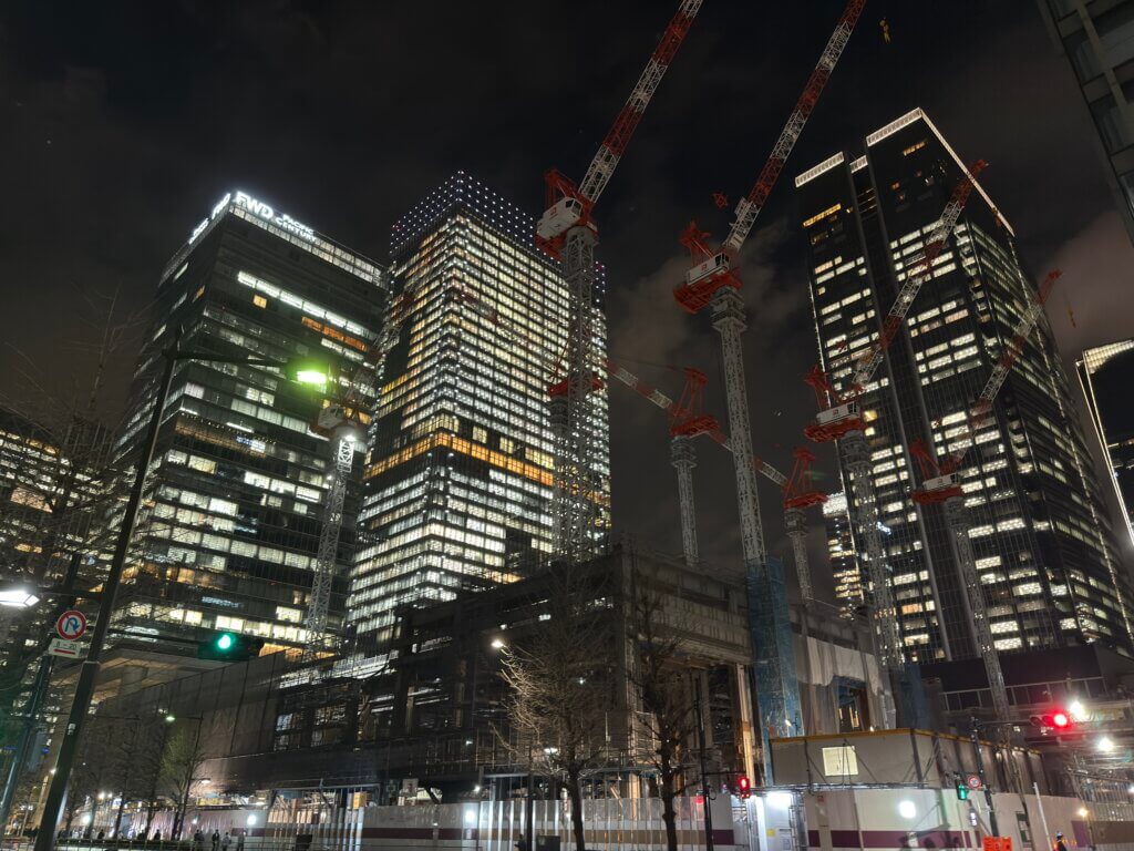こちらは、夜8時頃の八重洲口側です。こちら側も大規模工事が多いですね。私の好きだった八重洲ブックセンター辺りだけかとも思ったのですが、そこら以外でも大きな工事が進められています。