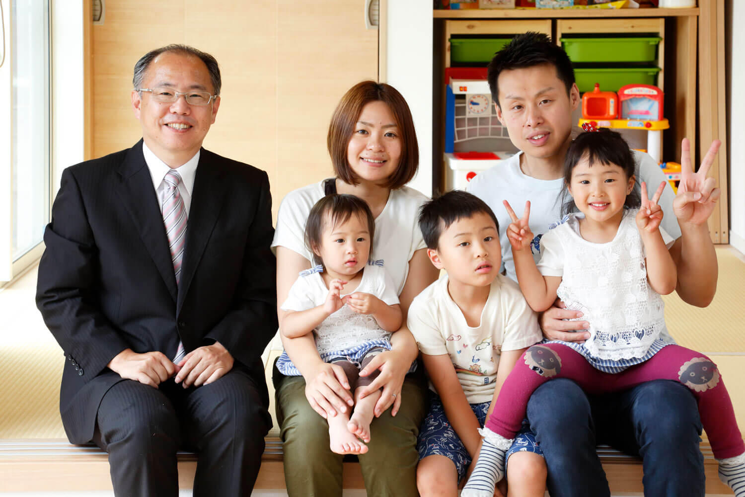 西村社長( 左 )と土橋様ご家族。「 自分たちでは気づけない部分をアドバイスしてくれたのがうれしかった」とご主人。