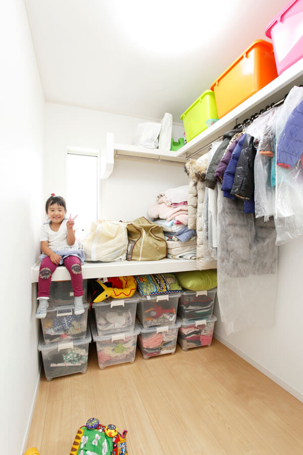 納戸は1階と2階それぞれにつくった。オフシーズンの衣類などを収納する2階の納戸は3畳と広々。